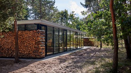 Det nybyggede sommerhus fra 2016 er på kun 75 m², men når man træder ind i alrummet, hvor køkkenet og stuen befinder sig, føles det langt større grundet de store glasarealer. Jan har valgt vinduespartier samt døre bygget op af en stålkonstruktion med et add-on glas-aluminiumsystem udenpå. Dette giver et meget råt udtryk. Det betyder også, at den stærke stålkonstruktion kan bære huset alene. Husets glassider er orienteret imod hhv. syd og vest for at få så meget lys ind som muligt, mens de to andre sider er lukkede. Opbygningen af huset er meget simpel, da der er tale om én kasse bestående af to soverum samt et alrum med køkken og stue. Derudover er bad og entre placeret midt i huset. Der er altså et absolut minimum af spildplads.