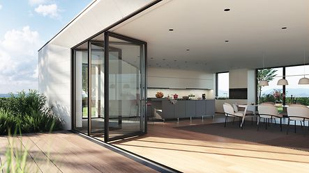 Med mange forskellige åbningstyper, smalle profiler samt et slankt og markant design kan du skræddersy den ønskede løsning perfekt til hvert enkelt projekt. Integrerede og skjulte låse og beslag bidrager yderligere til at opfylde de høje arkitektoniske krav. Dette resulterer i en problemfri overgang mellem inde og ude.