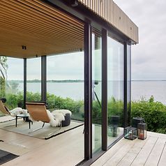 I et skønt grønt område på Fyn ligger dette arkitekttegnet sommerhus med en fantastisk udsigt ud til natur, himmel og hav.