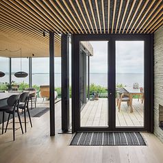 På alle 4 soveværelser er der bygget terrassedøre med automatiske vinduer AWS 114.SI med tiptronic. Husets specialitet er en kombination af stilrent design, det minimalistiske udtryk giver ro og rent æstetisk er det et smukt sted at være i.