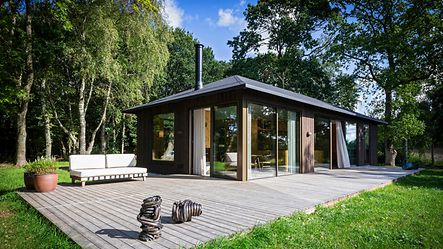 I et skønt grønt område i Jylland ligger dette arkitekttegnede villa, med naturen omkring sig og tæt på vandet.