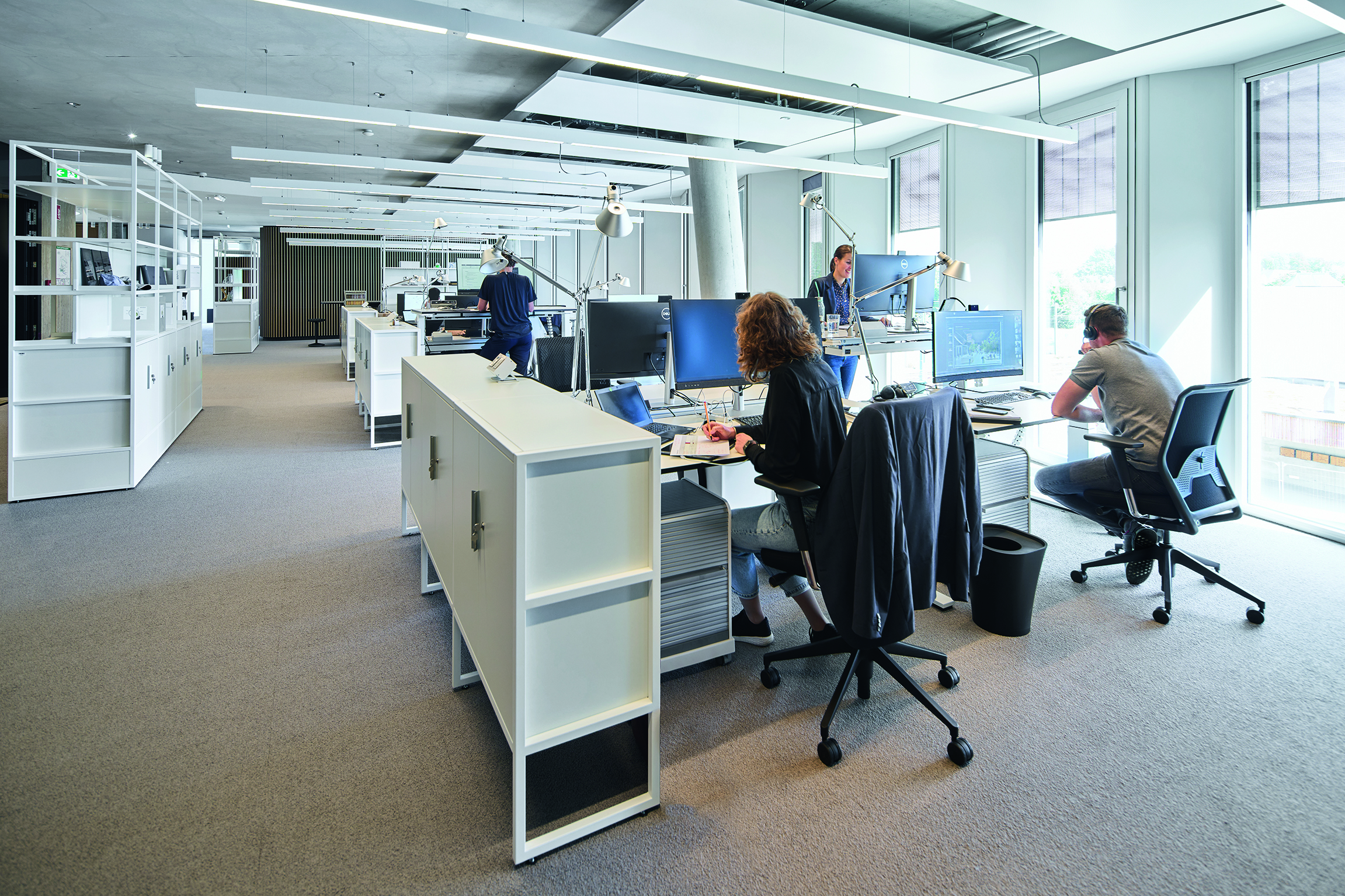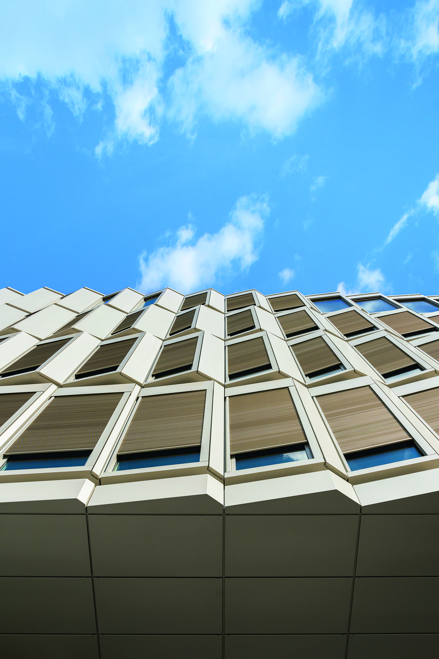 The electrically-operated, system-integrated Schüco Integralmaster glare protection along with the external Schüco CSB sun shading on rollers ensure that the workspaces remain free from glare and are adequately shaded.