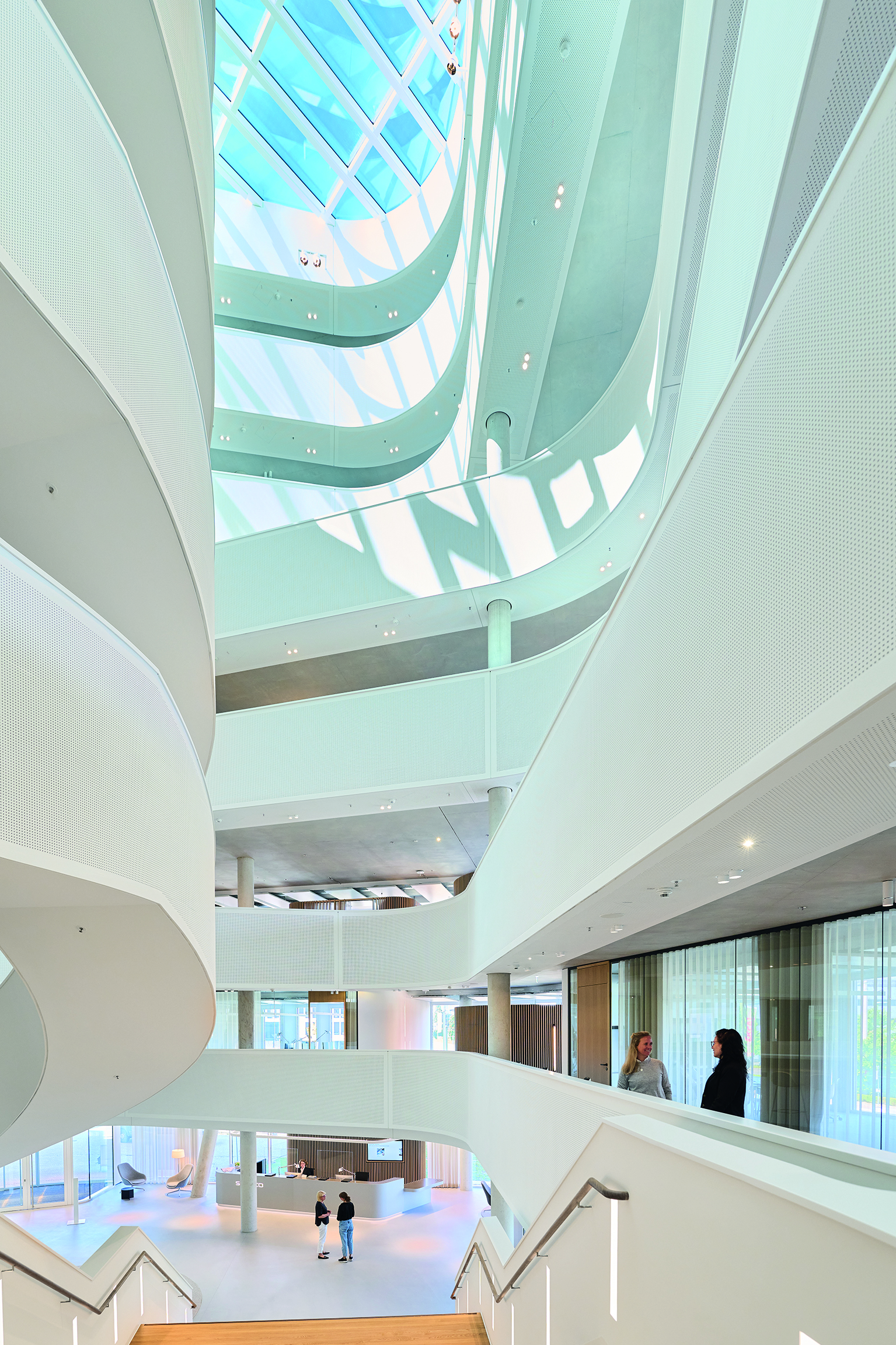 A large glass roof above the atrium floods the deepest parts of the building with lots of daylight.