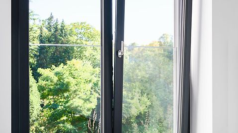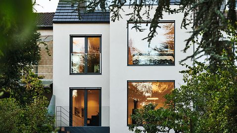 The interior of the old building was very dark; there were small windows, confined spaces and an equally narrow staircase. It was very important for the clients to make their new home as open as possible. They had very specific ideas about this: "We wanted the rooms to be as big as possible and flooded with light. That's why glass plays such an important role in our home," explains Kerstin Kuck. PVC-U windows from the Schüco LivIng system have been used throughout. One reason was the outstanding thermal insulation values combined with the excellent value for money that they offer. However, the design was also pivotal in their choice. Kerstin Kuck: "We wanted the whole frame to have just one colour on the inside. The Schüco series made this possible."