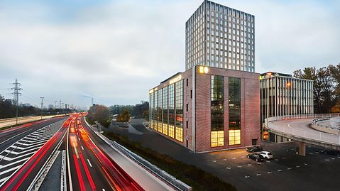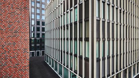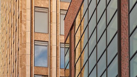 Como parte de la plataforma Schüco AWS en la profundidad de construcción de 90 mm, la ventana de aluminio ofrece una alta flexibilidad para la implementación de soluciones de diseño atractivas en la envolvente del edificio: en función de la exigencia arquitectónica, es posible la realización como ventana tipo hueco, ventana corrida o elemento adicional en fachadas Schüco, así como en combinación con sistemas de puertas Schüco.