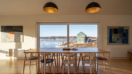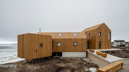 Designed and constructed by the architect Kingman Brewster, a newbuild in the small village of Joe Batt's Arm is strikingly modern. Brewster is from New York and moved from Brooklyn (NY) to Fogo Island with his family over ten years ago. Although the intention was to stay for just a few months, the family never left. Kingman Brewster has been respectfully marrying his contemporary sense of design and comfort with his appreciation for the local architecture ever since, which can be clearly seen in this family home: partly built on stilts, the building appears to float above the rocky landscape. This gives it a lightweight appearance, like a gentle footprint on lichen-covered rock. On the one hand, the stilts are practical for building on the uneven terrain, but they also pay homage to the typical wooden houses where the local fishermen process their catch. Aside from the stilt design, the small square windows are also reminiscent of the regional architecture. They frame the views from the inside, like a passe-partout, shining the spotlight on specific interesting details in the vast landscape. By contrast, large window and sliding units provide unobstructed views of the breathtaking surroundings and allow as much daylight as possible to flood the rooms. Schüco systems made of both PVC-U and aluminium have been used – the perfect material to suit requirements.