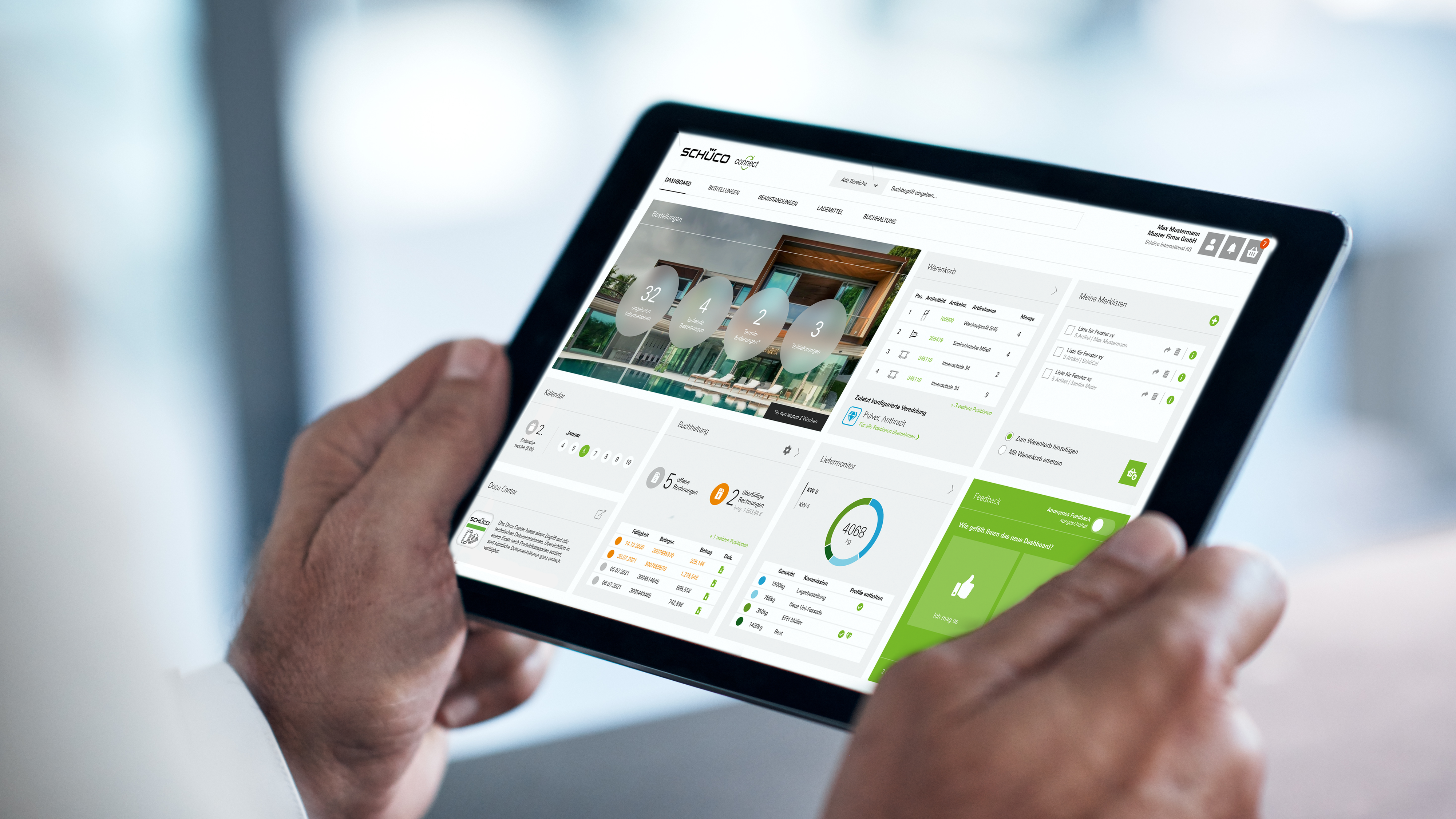 Puede acceder a Schüco Ordersoft a través de su área personal en "Mi área de trabajo". Y también móvil en la tableta