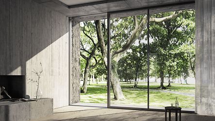 Accesible, muy fácil de usar y con una apariencia minimalista: el sistema de correderas y correderas-elevables Schüco ASE 80.HI de alto aislamiento ofrece soluciones de diseño elegantes para una arquitectura sostenible y orientada al usuario al nivel de passivhaus.