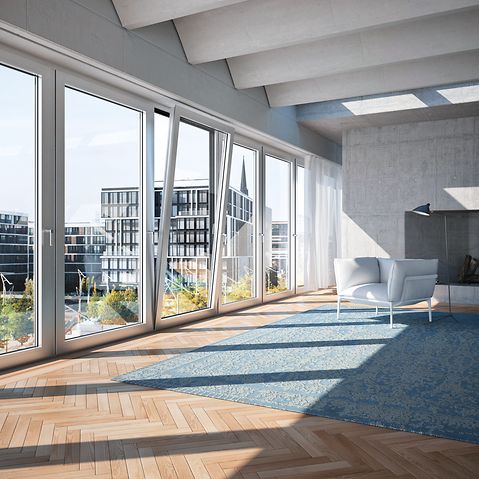 Para mayor comodidad y seguridad, las ventanas y puertas correderas Schüco se pueden controlar individualmente conectándolas al sistema de gestión del edificio y pueden reaccionar de manera inteligente al entorno. La tecnología de actuador oculta garantiza una temperatura ambiente agradable y tiene beneficios para su bienestar.