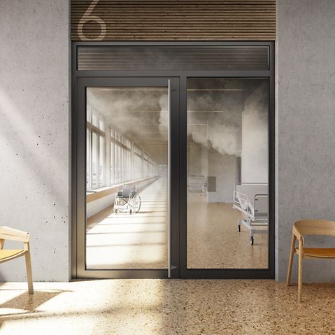It only takes a few breaths for people to find themselves in deadly danger. Fire is accompanied by poisonous combustion gases which if inhaled can lead to a loss of consciousness and death. Every year, more people die in fires through smoke inhalation than the flames themselves. Combustion gases are not always visible and as a result can often spread unnoticed. The danger can be reduced, however, with a comprehensive fire protection concept – which is also legally required for many building types. Smoke doors are a key component of this concept.