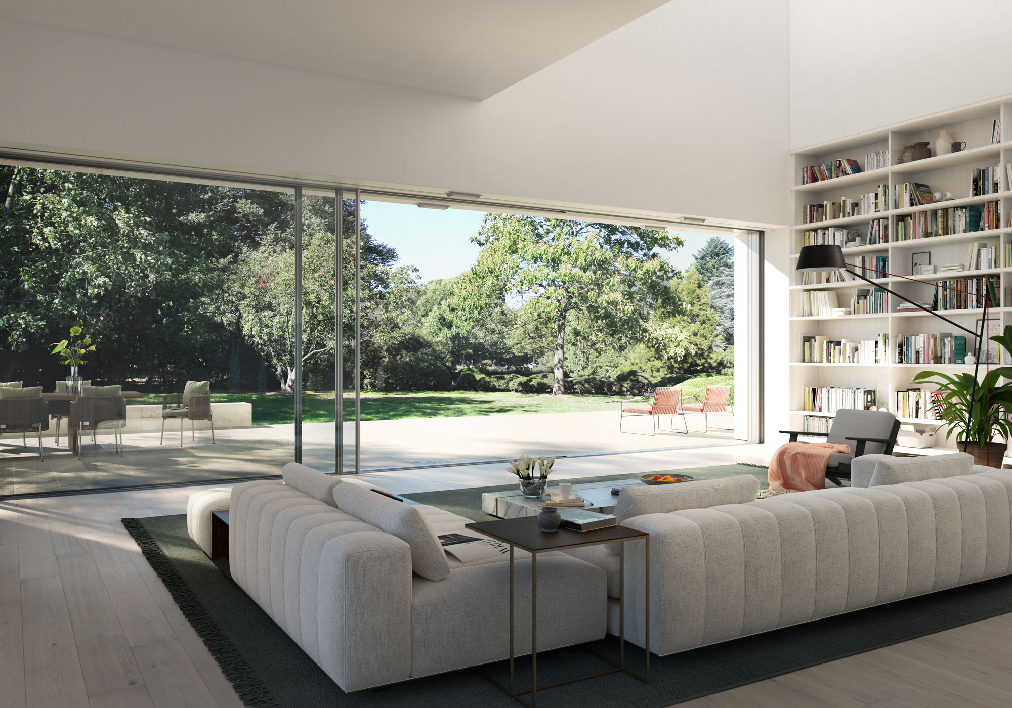 Ohuet ja läpinäkyvät Schüco Panorama Design -liukuovet tarjoavat mahdollisimman laajat näkymät. Kehyksettömissä liukuovissa, jotka upotetaan seinään, kattoon ja lattiaan, on maksimaalinen lasipinta-ala ja minimaaliset kehykset. Upea kohokohta missä tahansa rakennuksessa!
