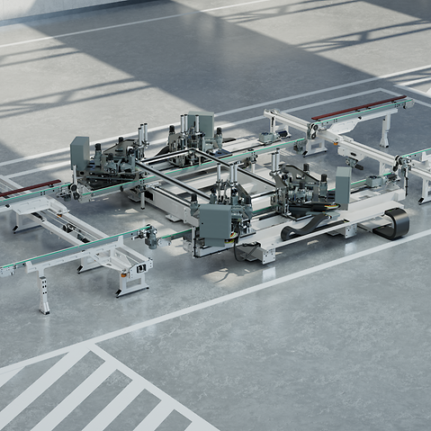The space requirements of our CC 800 can be variably adapted to your production hall. For example, the CC 800 needs a space of 17.7m x 6.5m (LxW) for a machine set up for the assembly of windows. This allows frames with a size of 2.8m x 2.5m to be manufactured. In this example, the automatic transport in and out is included.