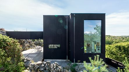 Between rocks and ferns, the 82 concrete steps wind up the steep mountain. They lead to Jacob and Jenny Fröslee Jonsson's holiday home: a timeless yet modern 100 m2 retreat on the small island of Flatön on the west coast of Sweden. The architect couple built Villa Yv for themselves and their four children.