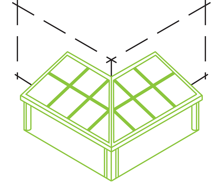Talvipuutarha suoralla pulpettikatolla tai elegantilla paviljonkityylillä - erilaisia elementtejä yhdistelemällä voi luoda erilaisia pohjaratkaisuja. Perusmittoja ja katon kaltevuutta on mahdollista säätää halutulla tavalla. Schüco talvipuutarhat valmistetaan millimetrin tarkkuudella mittojen mukaan, vakiomittoja ei ole.