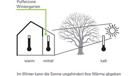 Lämpötilaero ulkoilman ja varsinaisen asuintalon sekä siihen liitetyn talvipuutarhan välillä on pienempi kuin jos talossa ei olisi talvipuutarhaa lainkaan. Näin erityisesti kylmissä lämpötiloissa saadaan aikaan ihanteellinen suojavyöhyke tilan ja ulkoilman välille - niin sanottu puskurivyöhyke. Energiaa säästävä vaikutus on olemassa yötä päivää - myös ilman suoraa auringonsäteilyä.