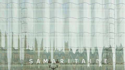 La Samaritaine, once the largest department store in Paris, has been completely renovated. The aim of the conversion and extension work was to create a mixed-use hotel, office and residential space, as well as a significantly smaller department store. For the new department store building, the Japanese architecture duo SA-NAA developed an undulating glass façade that runs in front of the thermal façade at a distance of half a metre to one-and-a-half metres. The individual curved glass panels are attached to the thermal façade at only four points by means of support arms, which are made of laser-welded stainless steel profiles. The ground floor is accessed via eleven double-leaf, 3.30-met-re tall swing doors in the undulating glass façade. Jansen developed all of the 22 leaves in close collaboration with Frener & Reifer based on the Janisol 2 EI 30 steel profile system as fire-resistant swing doors. Despite their enormous size, the extra-high leaves operate extremely smoothly and can be opened with minimal effort.