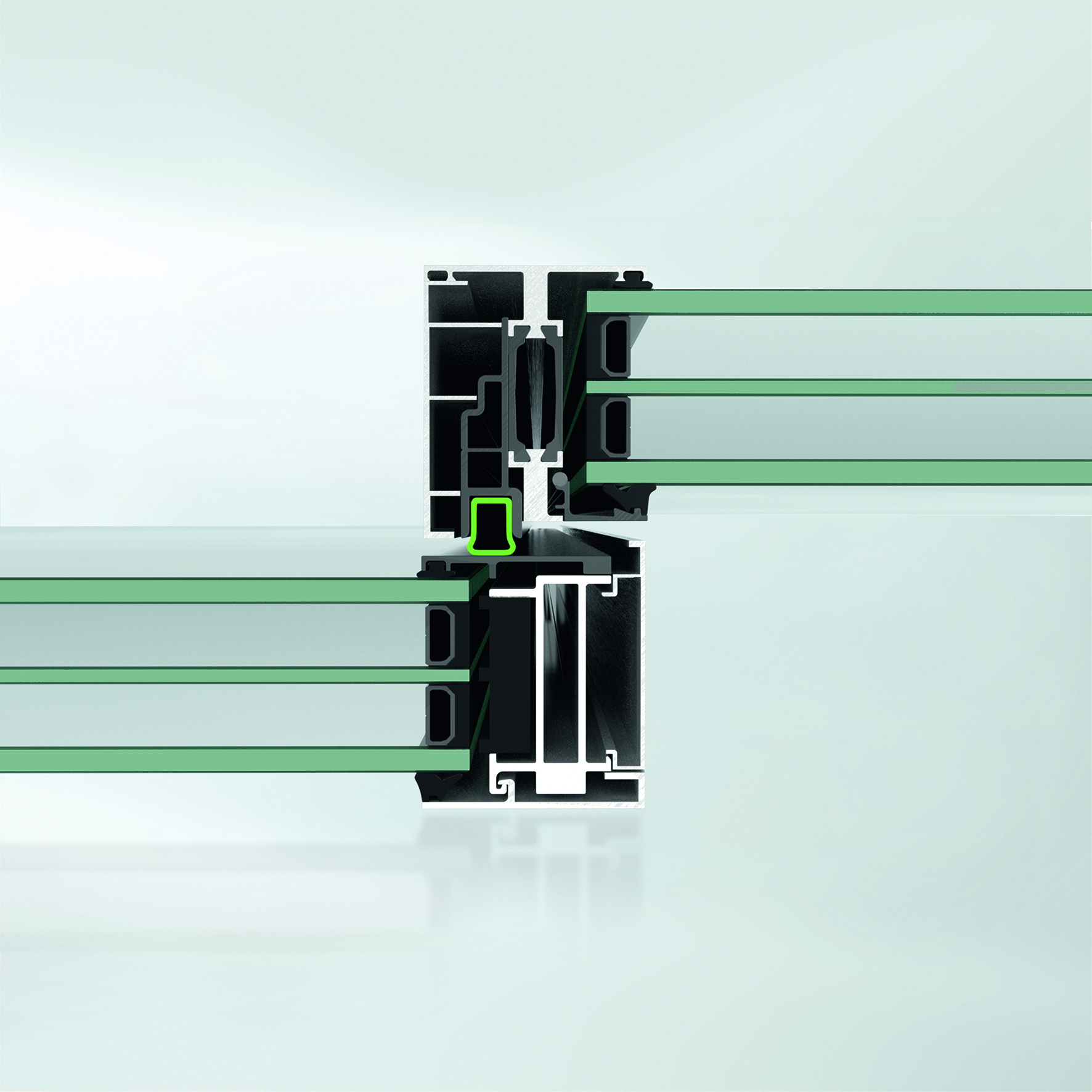 Aktive Dichtungstechnologie mit Membranfunktion: Der konstante Anpressdruck verhindert Schlaggeräusche bei starker Windeinwirkung und eliminiert Spielräume.