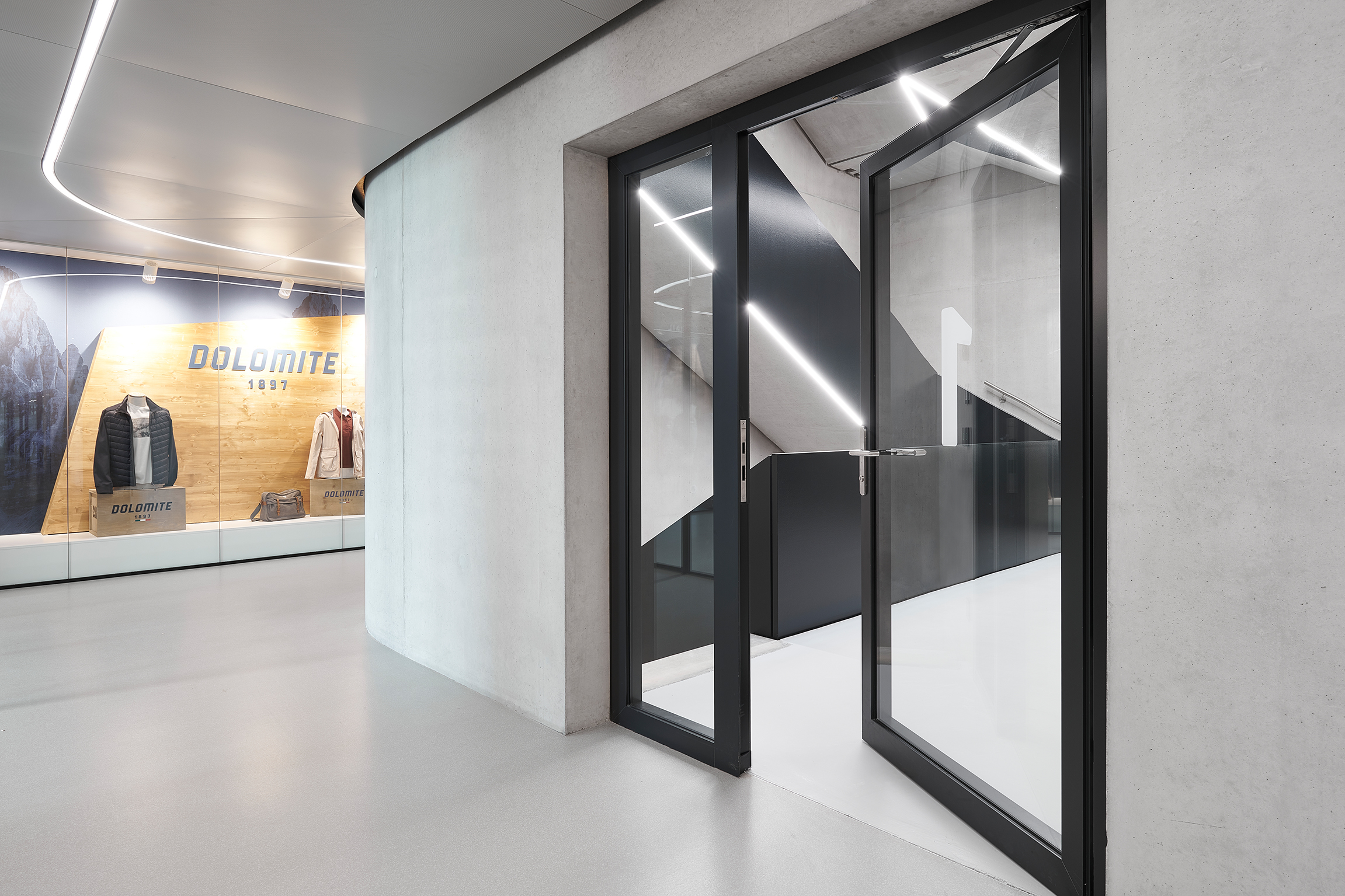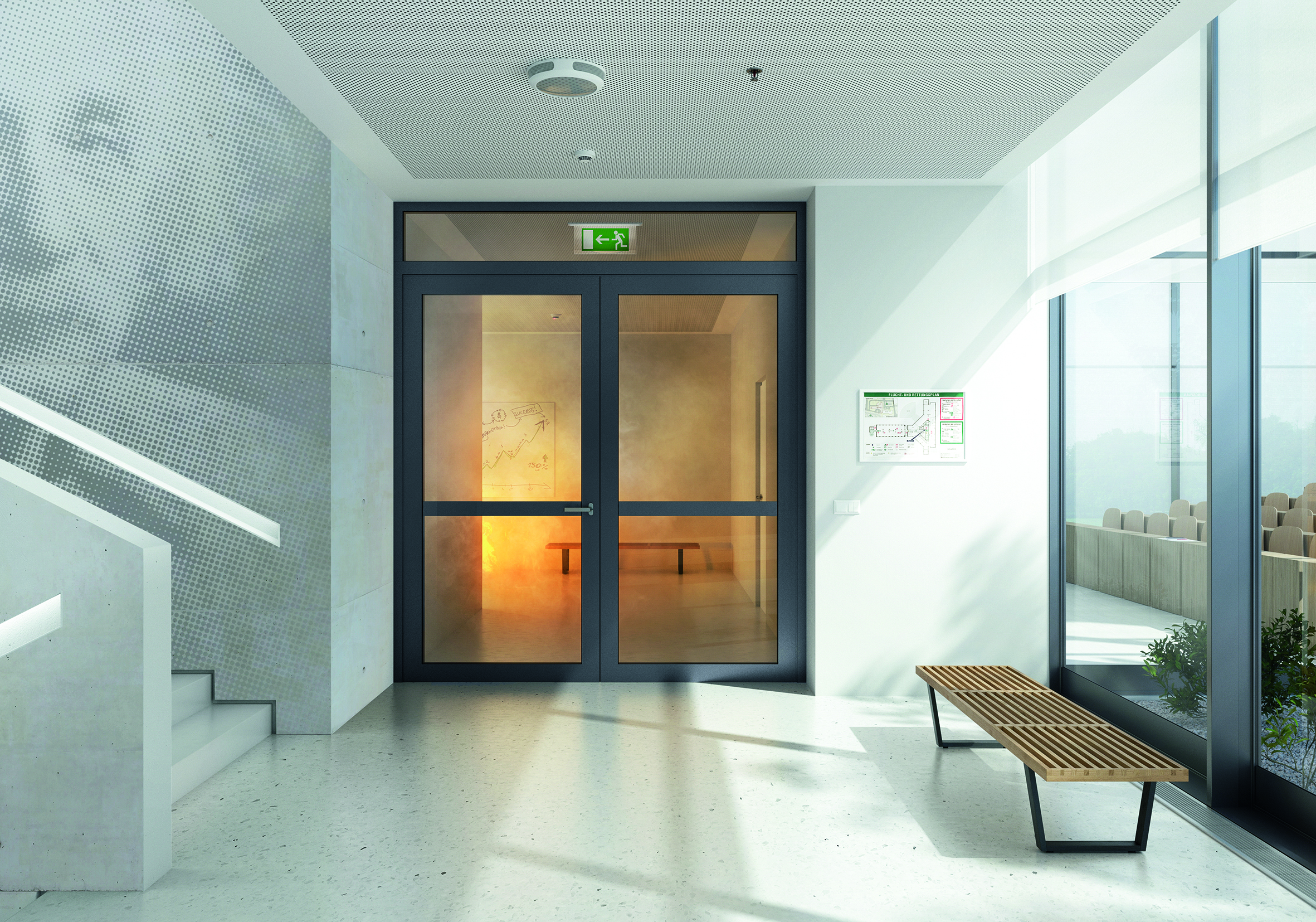 Alle Systeme der Schüco FireStop Plattform ermöglichen verdeckt liegende Beschläge für eine durchgängige Optik im gesamten Gebäude.