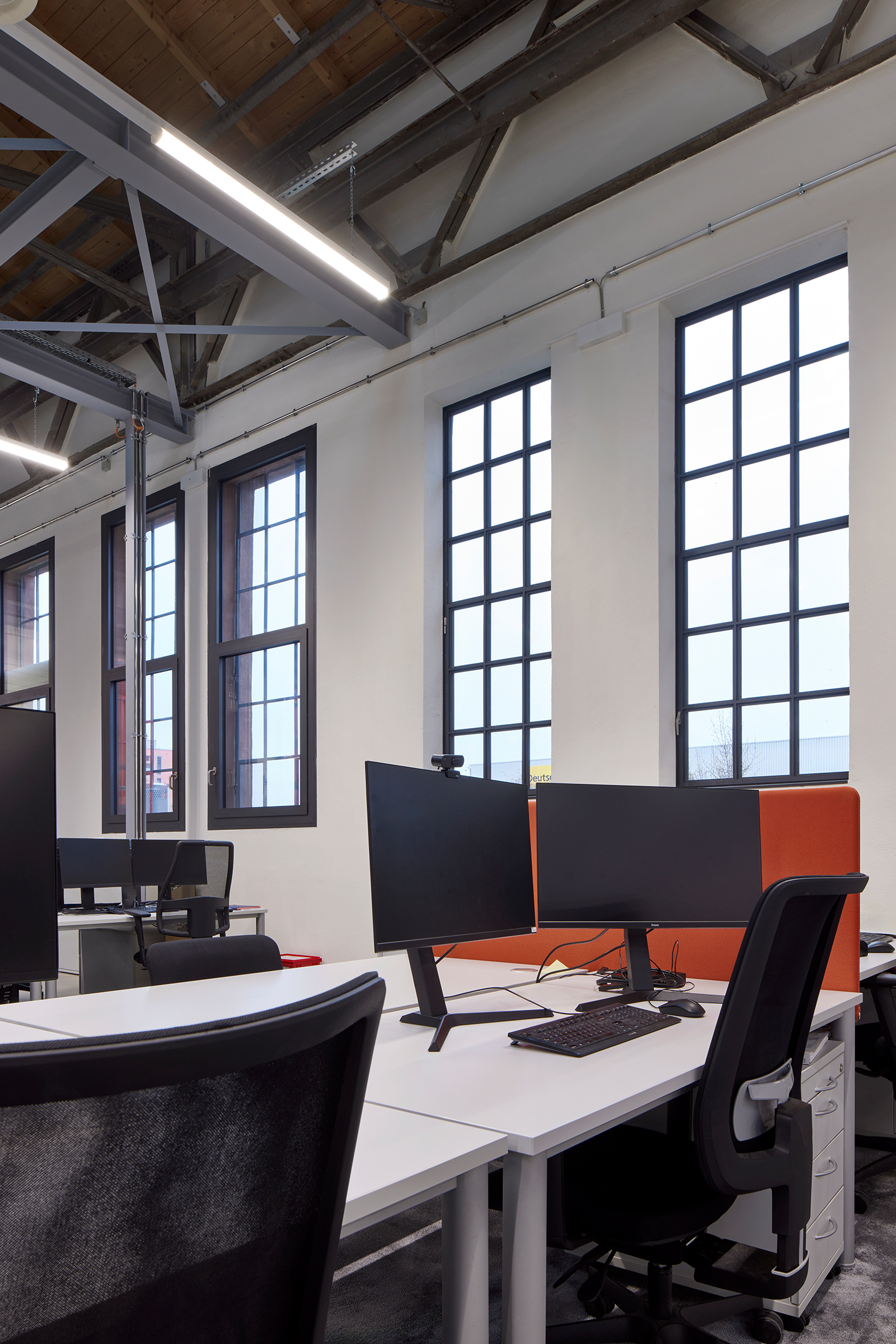Das einstige Bahnausbesserungswerk in München-Neuaubing ist heute Teil eines Gewerbeparks vor den Toren der bayerischen Landeshauptstadt. Die sog. „Werkhalle 3“, ein mit Klinkern verkleideter Stahlbetonbau aus dem Jahr 1906, zählt zu den ältesten Gebäuden auf dem Gelände. Bei der denkmalgerechten Sanierung setzen die Architekten u. a. auf Systeme von Schüco Stahlsysteme Jansen.