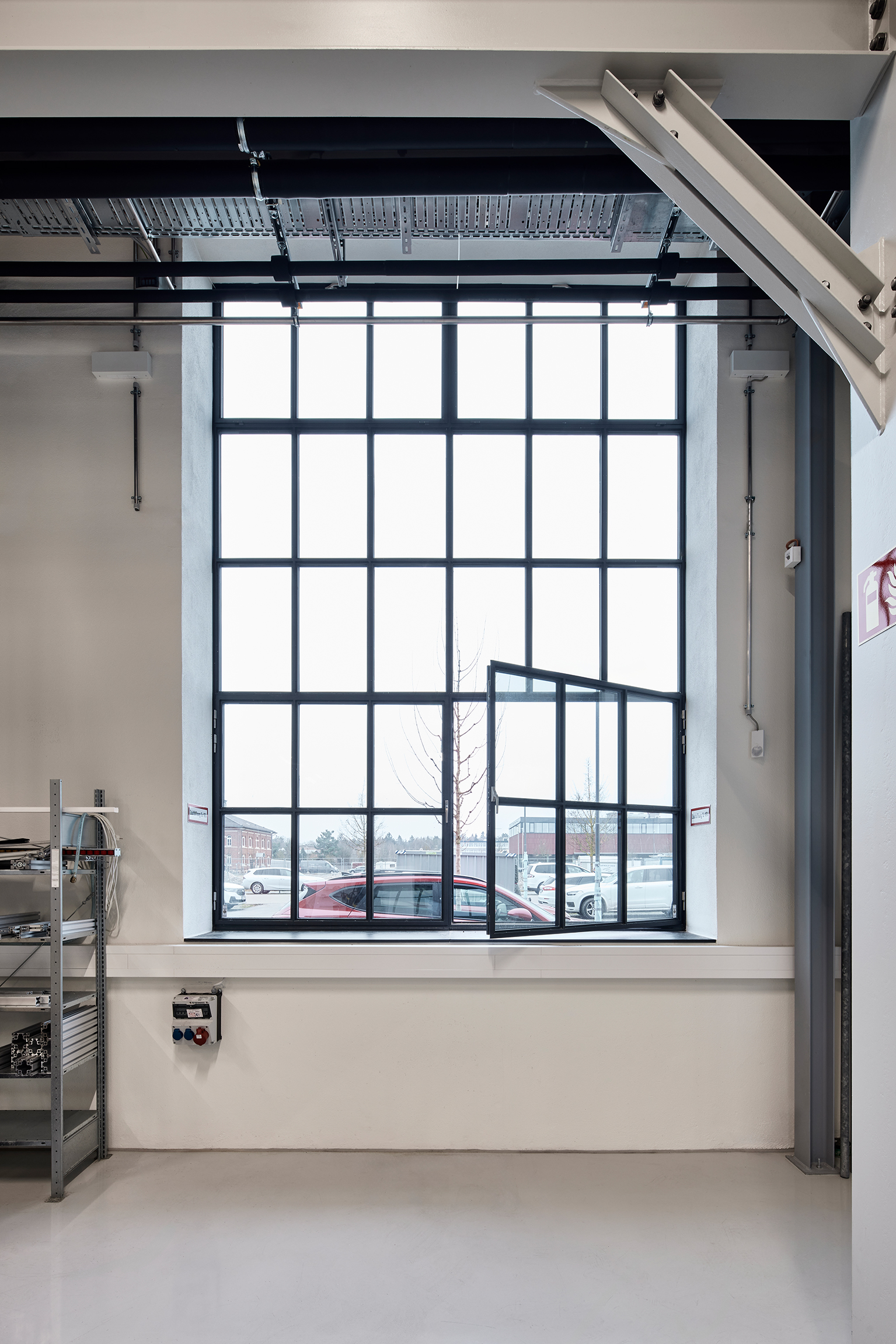 Die einfach verglasten Stahlfenster wurden zum Teil instandgesetzt und innen um eine thermische Fensterebene ergänzt.