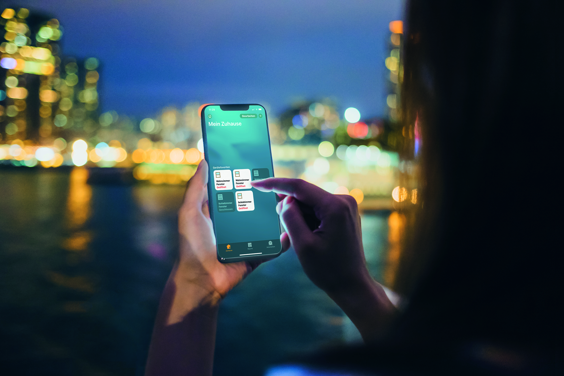 Ob zuhause oder unterwegs - der Verriegelungszustand der Fenster kann per Smart-Home-App auch unterwegs abgefragt werden.
