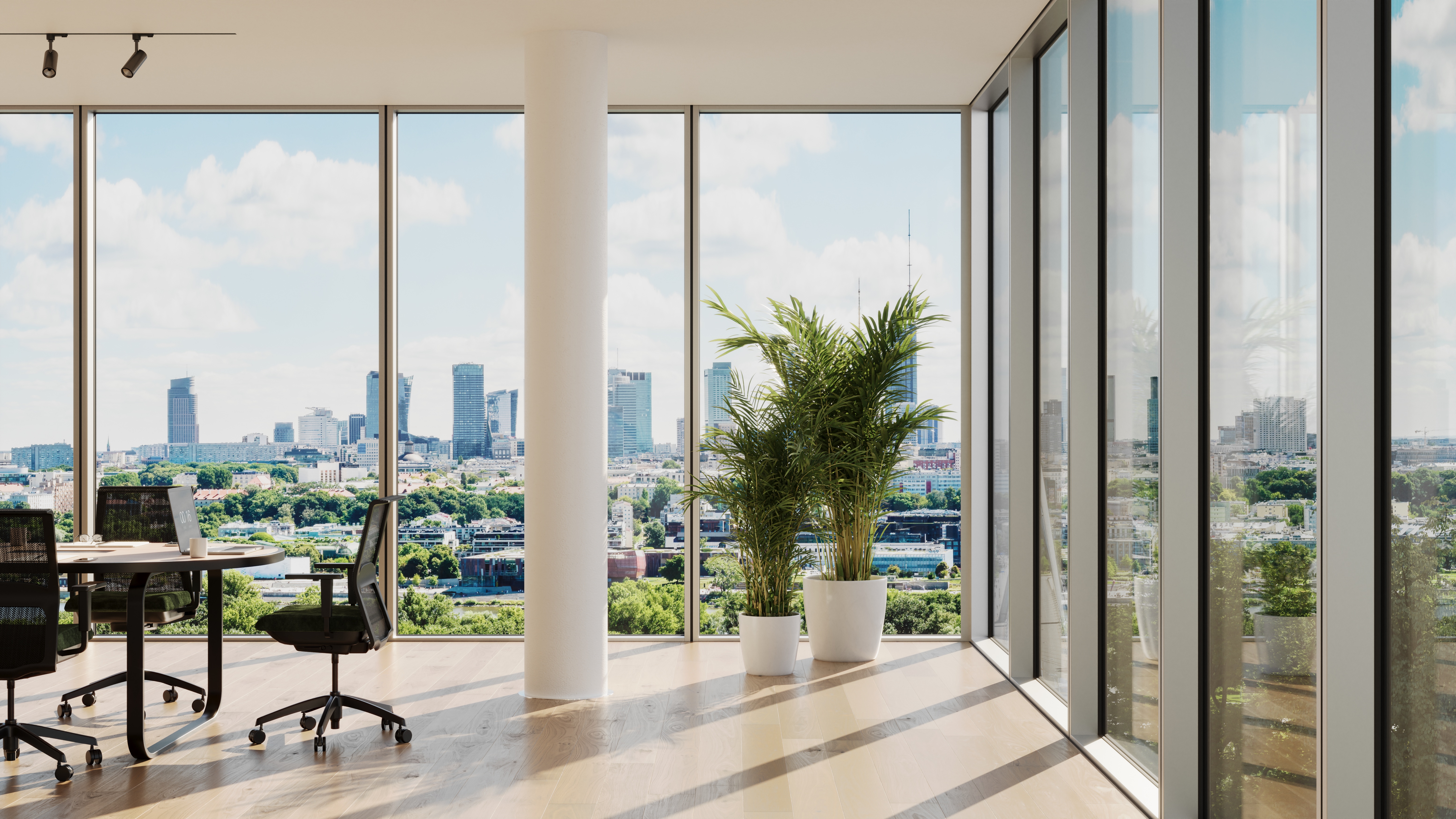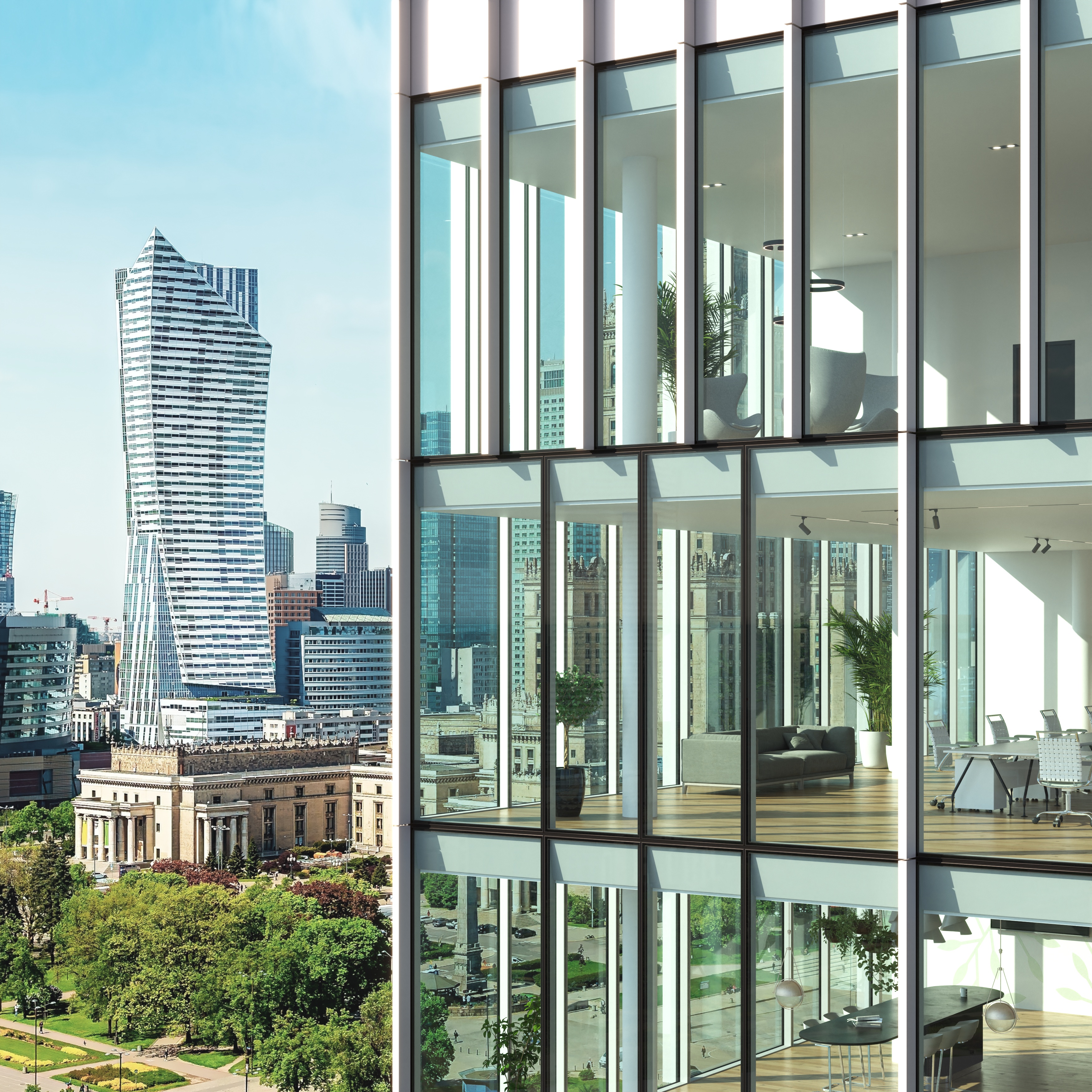 Die Schüco Minimal Wall reduziert den Materialeinsatz in der Fassade. Auch in der Innensicht ist der Unterschied deutlich zu erkennen. Links, dass traditionelle Design, rechts, die Minimal Wall.