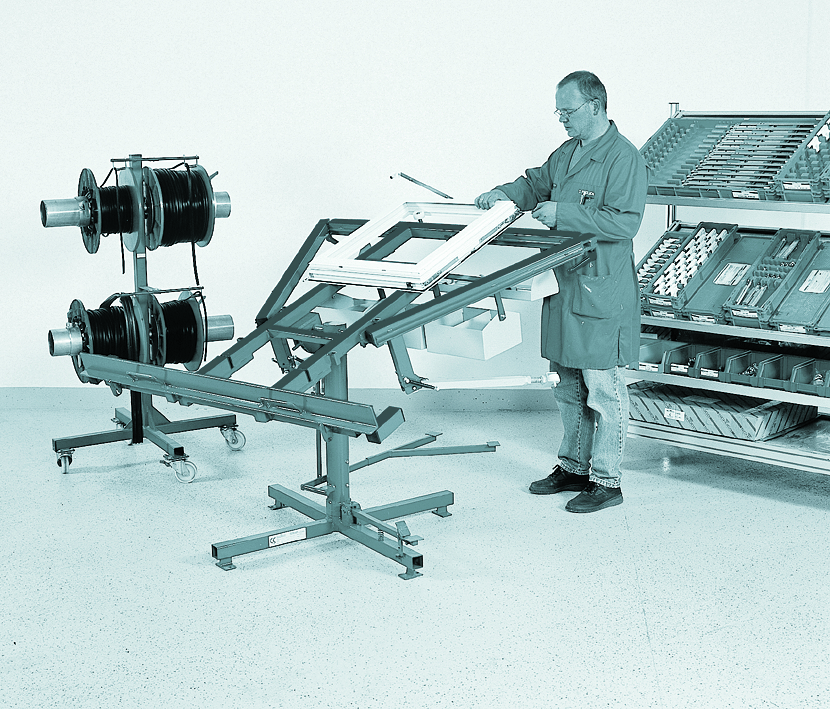 Der Profil-Arbeits-Tisch Flügel-Beschlagmontage ist ein vielseitiger Dreh-Kipp-Tisch für die verschiedensten Einsatzmöglichkeiten im Montagebereich von Flügeln und kleinen Rahmen. Die Arbeitsplattform ist durch Auszüge und Schwenkarme in der Größe variabel.