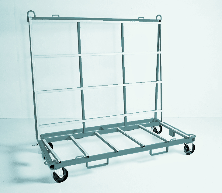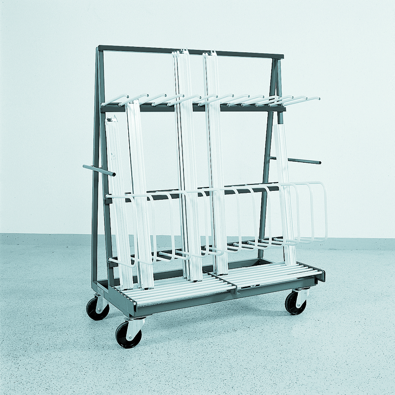 Der Profil-Transport-Wagen Glasleisten ist ausgelegt für den senkrechten Transport von Glasleisten.