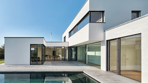 Ob Aluminium oder Kunststoff: Die modernen Schiebetüren von Schüco haben eines gemeinsam - sie sind ausgesprochen energieeffizient. Weil sie bereits in der Basisausführung hohe Dämmwerte erreichen, die sich bis zum einem U-Wert von 0,96 W/(m²/K), z.B. bei der Schüco Panorama Design Schiebetür ASS 77 PD.HI, steigern lassen. Für ein angenehmes Raumklima und deutlich reduzierte Heizkosten.