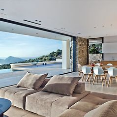 Haben Sie einen Lieblingsausblick? Ein Blick auf das Meer vielleicht? Das Meer mit seiner Weite. Nichts stört und bremst den Blick. Genau so einen Blick lässt sich mit Schüco Schiebetüren von Ihrem Zuhause aus genießen: eine Aussicht ohne optische Einschränkungen, mit schmalen Profilen, dass man sie schon fast übersieht.
