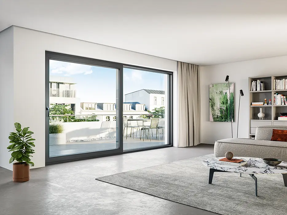 Schüco LivIng move can be designed with cover caps from the Schüco TopAlu series for integration in aluminium façades or even greater design freedom.
