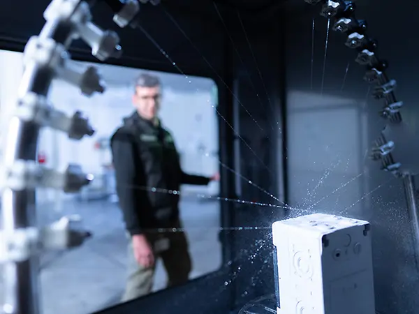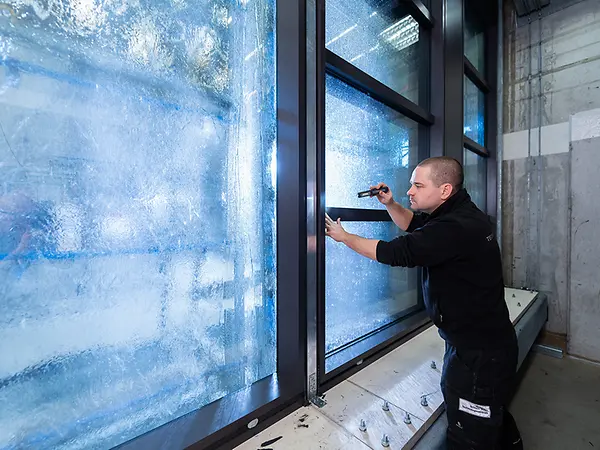 Whether or not the tests carried out in a laboratory correspond to what actually happens in reality is a question that arises time and again. In order to answer this question for our customers and ourselves, natural weathering tests are carried out under the climate conditions in Bielefeld. During these tests, meteorological data is calculated, temperature changes in and around the test units are recorded, the weathertightness and potential formation of condensation on the test units are documented and deformations and the impact of, for example, dirt and signs of ageing on the visual appearance of the installed materials are assessed. A function test then puts the unit through its paces.