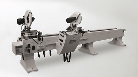 For vertical length cutting and mitre cut edges on thick-walled aluminium profiles, such as balcony profiles.