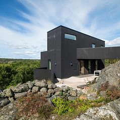 Between rocks and ferns, the 82 concrete steps wind up the steep mountain. They lead to Jacob and Jenny Fröslee Jonsson's holiday home: a timeless yet modern 100 m2 retreat on the small island of Flatön on the west coast of Sweden. The architect couple built Villa Yv for themselves and their four children.