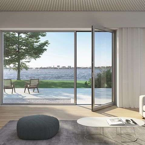 The Schüco AWS barrier-free window construction allows for a seamless transition from inside to outside. The window system has different opening types, is easy to use and has a zero-level threshold, thereby meeting all of the requirements in terms of comfort and design.