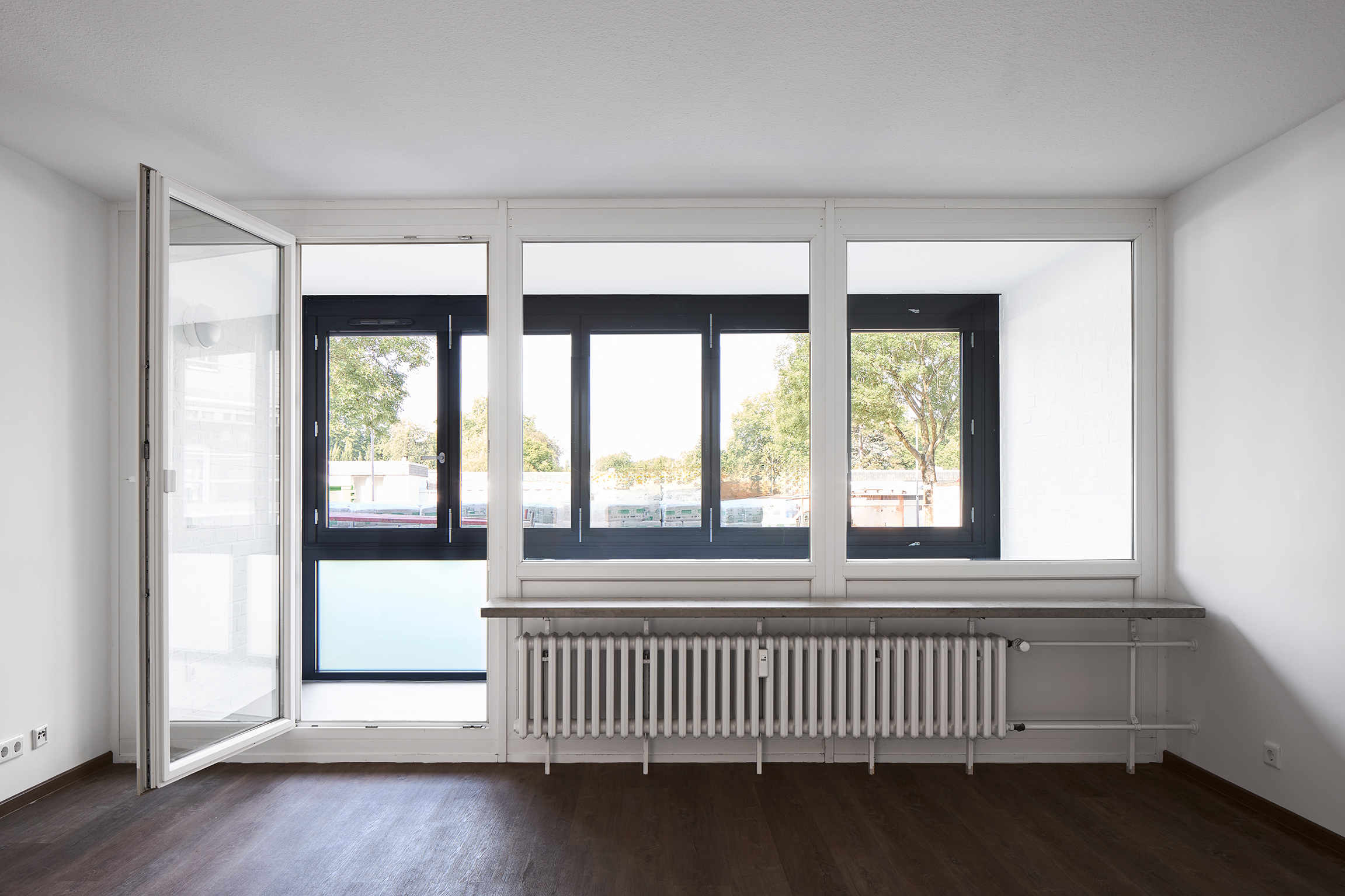 The Schüco units can be opened up across almost the entire width of the space. The loggia can therefore be used like a balcony in the warmer months.