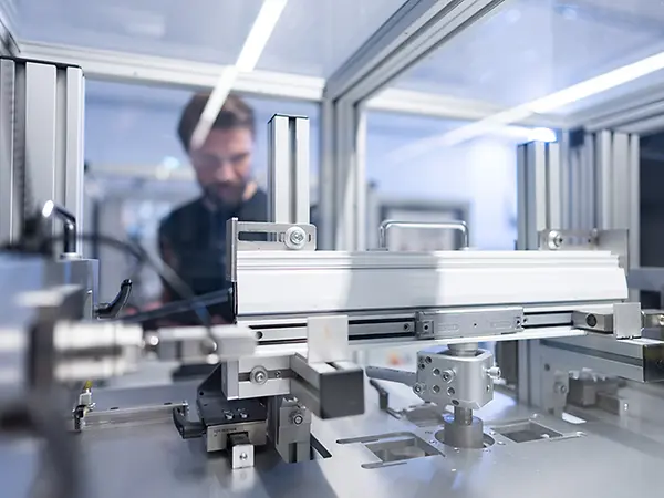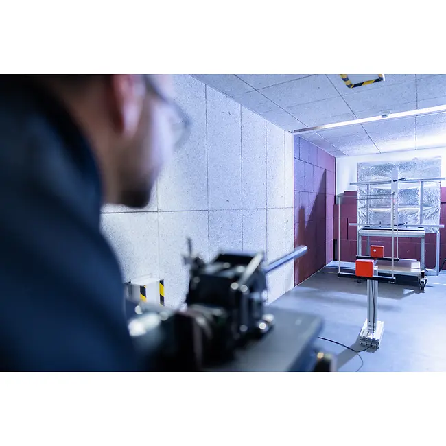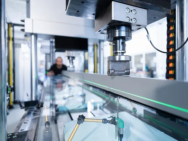 Il nostro banco di prova, con 5.000 mm di lunghezza e 1.100 mm di larghezza, dotato di due portali mobili, offre numerose possibilità di collaudo. Oltre ai test su squadrette a T, squadrette angolari e supporti vetrati, è possibile eseguire prove di flessione a quattro punti e test specifici su richiesta.