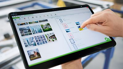 La versione mobile del Fabrication Data Center rende flessibili le funzioni del centro di produzione, rendendole disponibili direttamente in officina. Il tablet robusto e resistente è facilmente accessibile e rende disponibili tutte le informazioni rilevanti per la produzione, che tu sia in magazzino, alla macchina o in cantiere.
