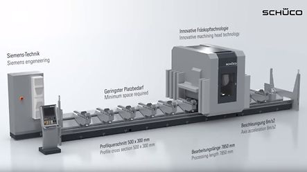 Schüco Machine AF 500 は、6面でのマシニングが特徴で、アルミニウムやスチールの形材に適した効率的な加工機械です。