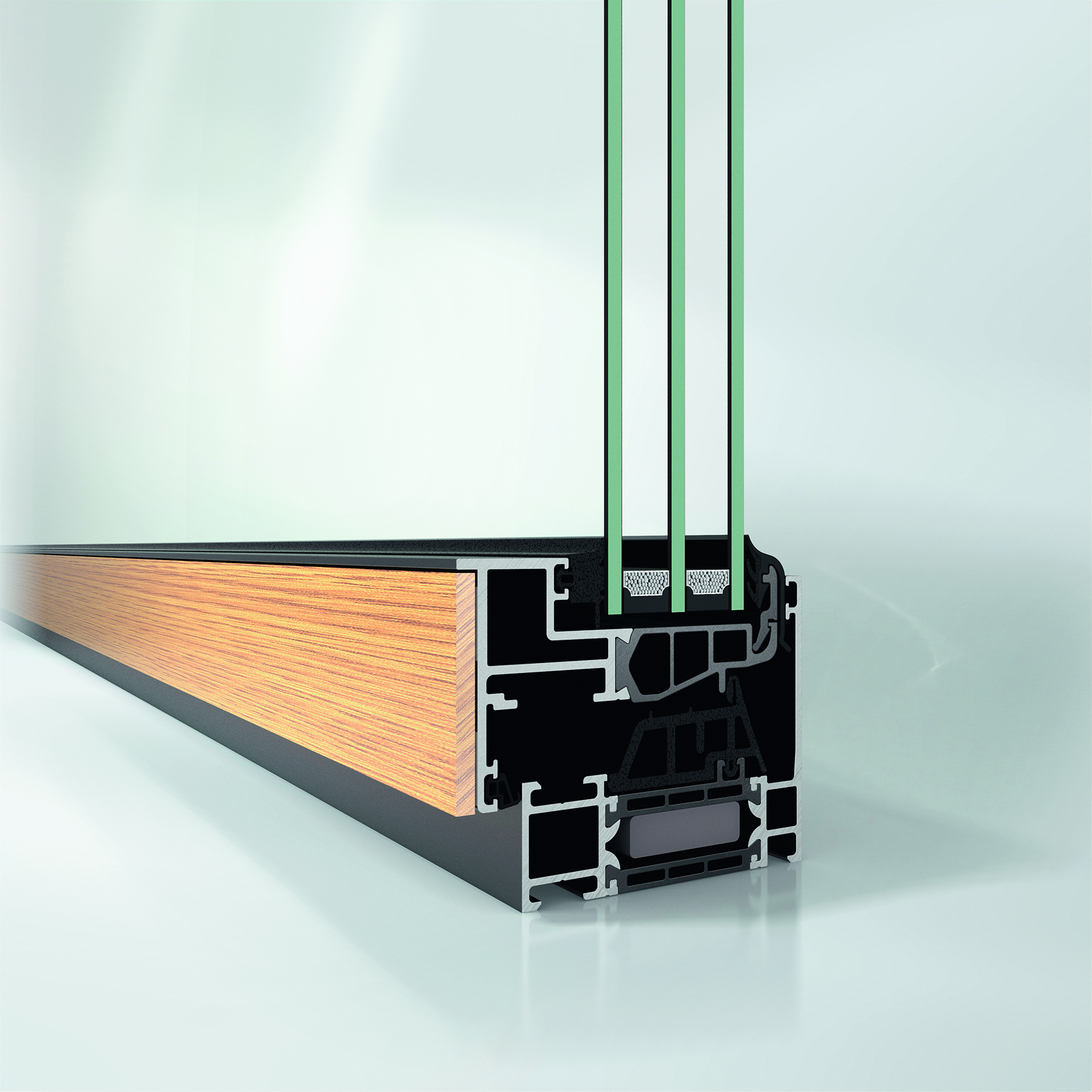 Schüco AWS (Aluminium Window System) WoodDesign is available for the existing aluminium block window systems Schüco AWS 75 BS.HI+, AWS 75 BS.SI+ and AWS 90 BS.SI+ (shown in image).