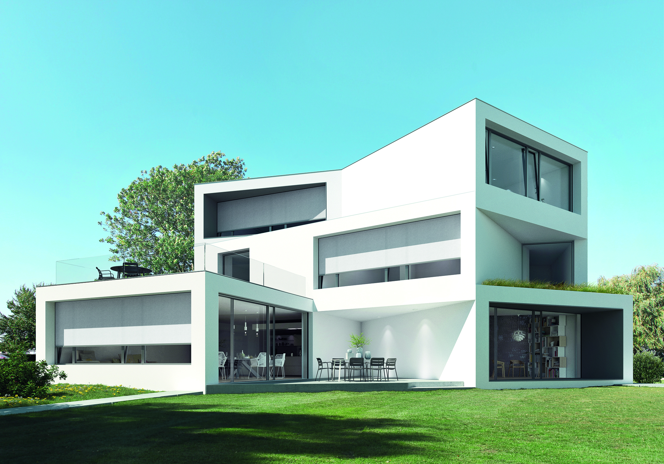 The internal sun shading combines glare protection, sun shading and thermal insulation in a single system, regardless of wind and weather.