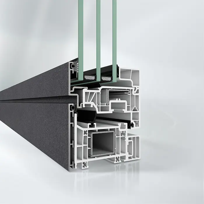 VIEW: The new Schüco Symbiotic design window system made from aluminium and PVC-U combines the benefits of both materials and is characterised by narrow face widths and a puristic, angular design.