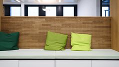 Schüco Corporate Services is a modern office space on the Campus that has been sustainably renovated in line with the 'New Work' principles. From the envelope through to the new interior, a holistic approach was taken to the complete refurbishment. As the fabric of the building was in excellent condition, renovation was the clear way forward from the start. It was therefore possible to complete work on the building significantly faster and more cost-effectively than if it had been a newbuild.