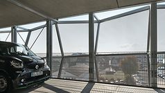 Besides the unique three-dimensional structure of the car park, its impressive lighting concept also stands out. By day, the transparent material covering the building allows the levels to be flooded with natural light, while a lighting system specially tailored to the shape of the façade illuminates its 3D structure at night and forms creative light effects.