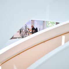 A particularly striking feature in the atrium is the wide staircase to the first floor, which serves as a place where people can meet and communicate with one another.