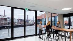 Derived from a sustainability-focused way of thinking, the RAG newbuild was constructed from fully recyclable, local materials. The Silver-certified AWS 75.SI+ aluminium window system from Schüco was used, for example. Its individual window units can be fully recycled if the building is demolished or converted, making a zero-waste façade a reality.Furthermore, C2C-certified oak parquet flooring and carpet tiles which absorb particulate matter were used, as was a C2C-certified glass partition wall system. A geothermal energy system and a solar pergola integrated on the roof mean that the energy that is generated and used is sustainable. The green roof also offsets the ground space that is sealed off by the construction work, and promotes biodiversity.