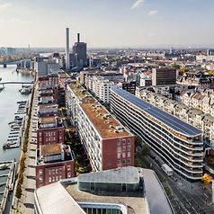 프랑크푸르트의 Westhafen 지구 근처에 위치하고 2015년 7월에 완공된 Aktiv-Stadthaus는 세계에서 가장 크고 최초의 에너지 플러스 건물입니다. 8층 건물은 발코니와 로지아를 갖춘 60~120m2 크기의 장벽 없는 임대 아파트 74채를 위한 공간을 제공합니다. 또한 매년 주민들이 필요로 하는 것보다 더 많은 에너지를 생산합니다. 혁신적인 파사드와 결합된 세련된 에너지 개념은 미래 아파트 단지의 비법입니다.
