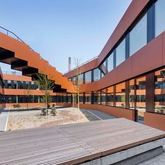 지속 가능성에 중점을 둔 사고 방식에서 파생된 RAG 신축은 완전히 재활용 가능한 현지 재료로 건설되었습니다. 예를 들어 Schüco의 실버 인증 AWS 75.SI+ 알루미늄 윈도우 시스템이 사용되었습니다. 건물을 철거하거나 개조할 경우 개별 윈도우 유닛을 완전히 재활용할 수 있어 폐기물 제로 파사드가 현실화됩니다. 또한, C2C 인증을 받은 오크 파켓 바닥재와 미립자 물질을 흡수하는 카펫 타일을 사용하였으며, C2C 인증을 받은 유리 칸막이 벽 시스템을 사용하였습니다. 지열 에너지 시스템과 지붕에 통합된 태양열 퍼걸러는 생성되고 사용되는 에너지가 지속 가능하다는 것을 의미합니다. 녹색 지붕은 또한 건설 작업으로 인해 봉쇄된 지상 공간을 상쇄하고 생물 다양성을 촉진합니다.