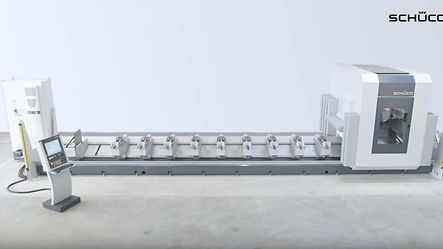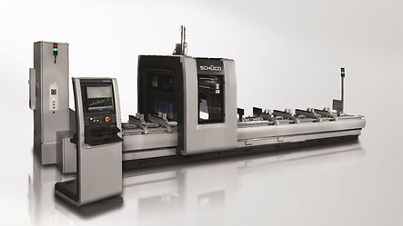 다양한 프로파일 절단 및 절단 옵션이 있는 새로운 제조 시스템은 현대의 5축 CNC 기계처럼 유연합니다. Schüco AS 100은 고속 및 연속 제작 공정을 통해 연속 공급 시스템의 이점도 제공합니다. 이 시스템은 제작 최적화 측면에서 선구적인 고성능을 발휘할 뿐만 아니라 최소한의 공간 요구 사항으로 인상적입니다. 이는 최대 7,500mm의 프로파일을 유지할 수 있는 복합 하역 매거진에 의해 보장되며, 따라서 시장에서 사용 가능한 기계의 최장 무인 작동이 가능합니다. 기계의 핵심은 처리 스테이션입니다. 9m 기계 베드는 절단 및 프로파일 끝 처리를 포함한 4면의 프로파일을 처리하는 2개의 5축 타워뿐만 아니라 5개의 자체 포지셔닝 클램프도 수용합니다.