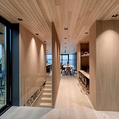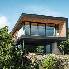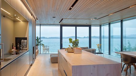The owners of Villa Melstokke found a very special location for their home, where they can experience the wonders of nature – sometimes serene, sometimes wild. The south-west coast of Norway is notorious for its heavy rainfall. The plot of land belonging to Villa Melstokke in southern Norway is punctuated by trees, heathland and rocks. But when the sun does shine, it enchants both people and nature – even through to the early hours in summer. For the construction of Villa Melstokke, it was therefore particularly important to the owners for the house to face the sun all day long. Supported on a steel base, the house appears almost weightless in the surrounding landscape. This was made possible through the special design of the building. A V-shaped base made from steel elevates the house up towards the light. Two terraces lead out from the kitchen; one for the morning sun and one for the evening. Angled walls provide protection from the wind, while elegant sliding doors enable a view of nature's miracles from the comfort of the interior. Watching a storm in the fjord is better than any crime drama!